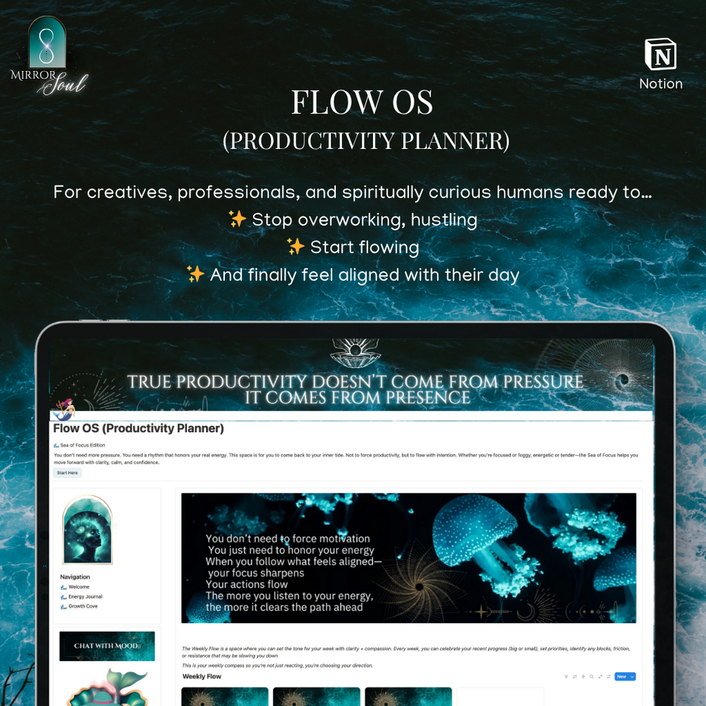 Flow OS is a calming, ocean-inspired Notion workspace designed to help you get things done without burning out.