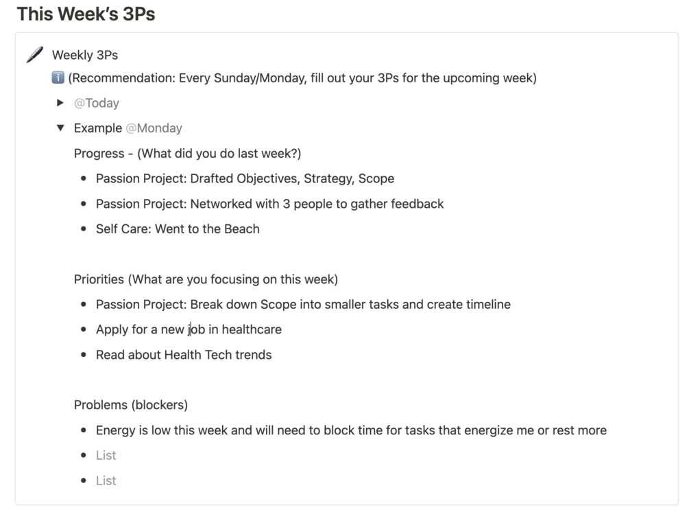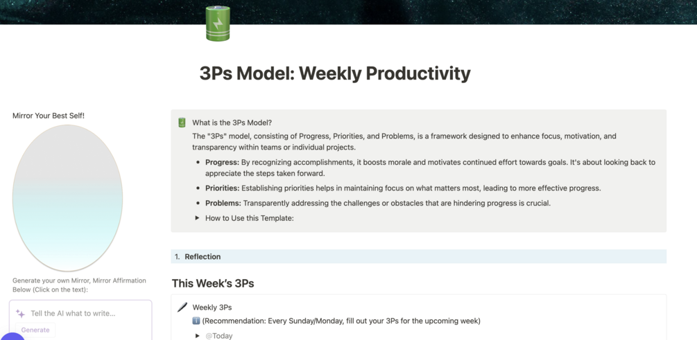 Notion Template with the 3Ps Model Features